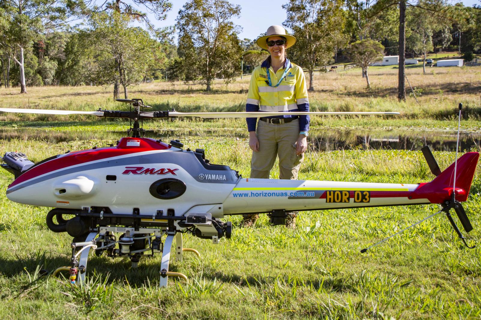 Ms Doman said the RMax was capable of carrying a sixteen-litre payload of herbicide each flight for targeted weed spraying in difficult-to-access areas.