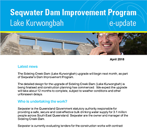 The Sideling Creek Dam upgrade will begin next month. We expect construction to take about 12 months depending on weather and any unforeseen circumstances.